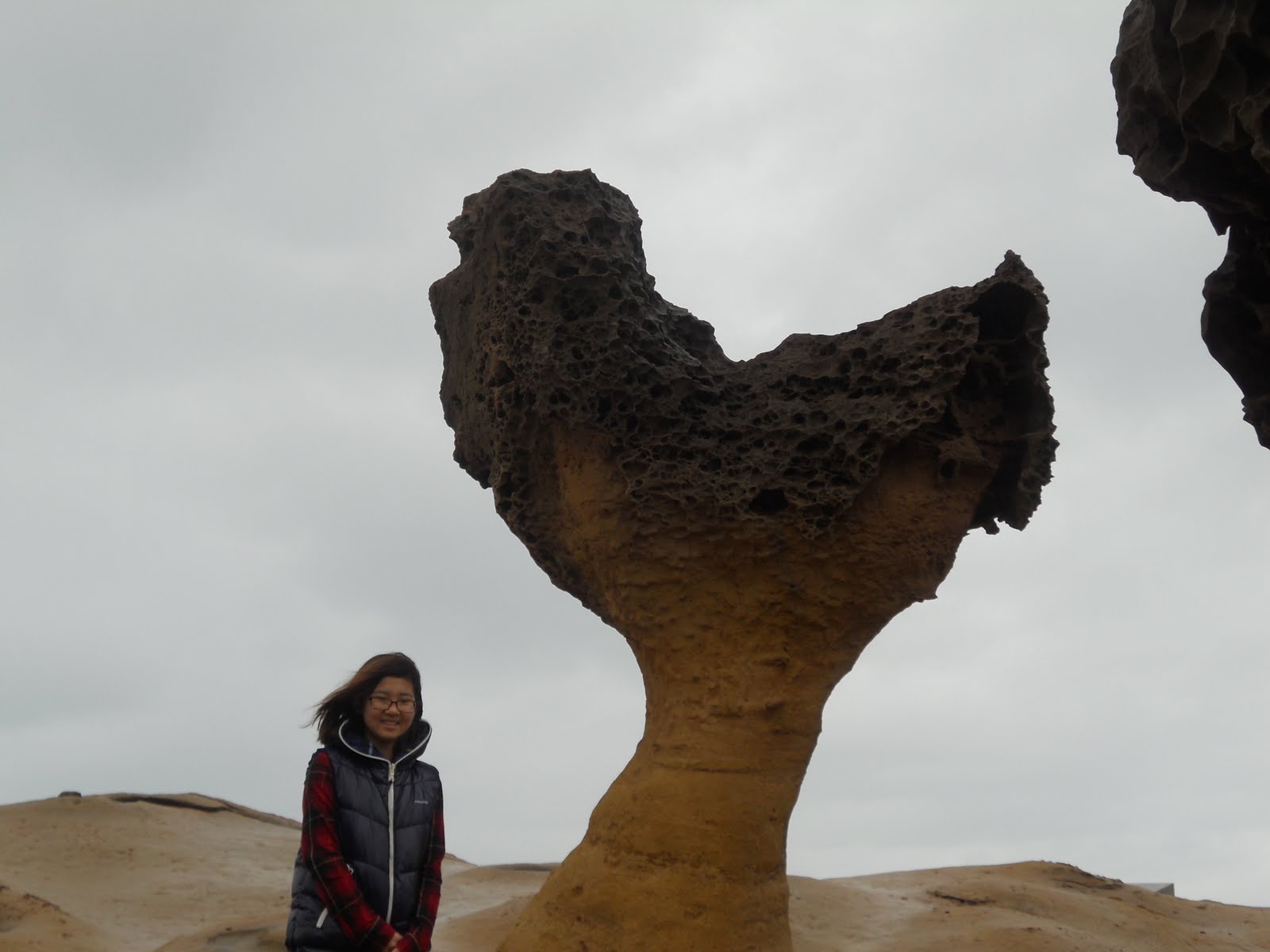 There were many different types of rocks at Yeliu. Jessica just happened to choose this strange-looking rock to stand in front of.